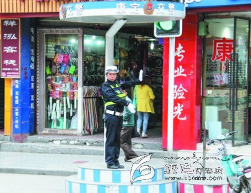 “川G*****,趕快開走,不要在公交站牌前停靠”,“那位騎摩托車的,速度慢一點,慢一點。”八點鐘,曹韓康的大喇叭聲準時在群藝館十字路口響起。