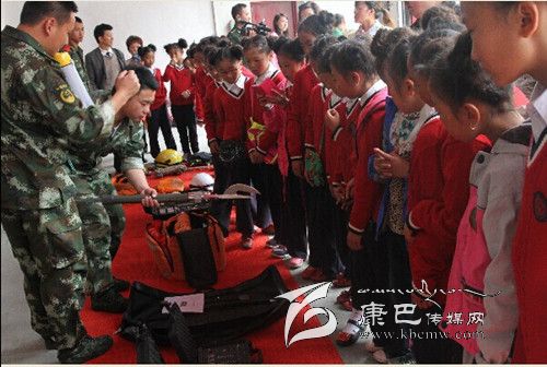 師生們在康定縣消防中隊副中隊長李勇的帶領下,參觀了消防員宿舍、榮譽室、軍人俱樂部等。官兵們“豆腐塊”的被子引起了學生們濃厚的興趣和強烈的好奇心。不少孩子親自動手,嘗試在消防官兵的指導下學習疊“豆腐”被子,并進行了內(nèi)務整理。在消防器材展示環(huán)節(jié),師生們走進車庫,中隊官兵介紹了各類消防器材裝備的名稱、性能和使用方法以及各類消防車、隔熱服、避火服、防化服和背戴空氣呼吸器等特勤器材的性能和使用方法。在消防安全課堂上,官兵們向學生們播放了《校園消防安全警示錄》,并結合實際向同學們講解了學校防火的重要性、火場逃生自救方法、初期火災的撲救、滅火器的使用、如何報火警等基本消防知識。在聯(lián)歡活動現(xiàn)場,消防官兵傾力打造的舞蹈《小蘋果Style》贏得同學們滿堂喝彩,現(xiàn)場響起熱烈的掌聲。學生們帶來的《吉祥中國結,美滿中國夢》跳出了小朋友們的美滿幸福之情。文藝演出的最后,消防官兵們還為學生們帶來了消防時裝秀,穿著各式服裝的消防戰(zhàn)士閃亮登場,向孩子們講解了這些服裝在各種災害事故現(xiàn)場的用途。