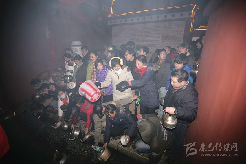 “每年大年三十我都會在這里來搶頭水,傳說郭達(dá)山神和跑馬山仙女會化身為一對金鴨在里面戲水。老人們說大年三十到正月初一‘翻年’那個節(jié)點來取水,就能看見金鴨,而水也等同于仙液?!痹趧倓偰隄M40歲的陳先生兒時的記憶中,這里每到春節(jié)“就會有人提著水桶,拿起茶壺排起長龍來看金鴨,搶頭水?!?/span>