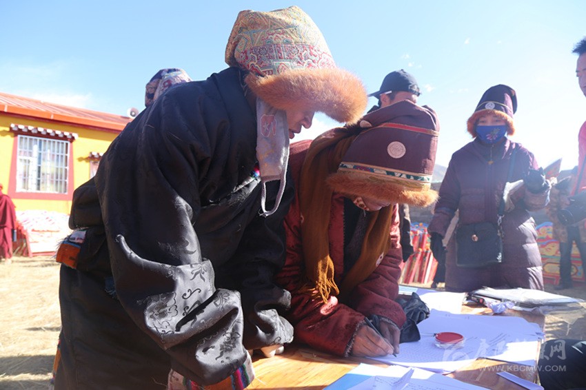 農(nóng)牧民簽字領(lǐng)取新家具。