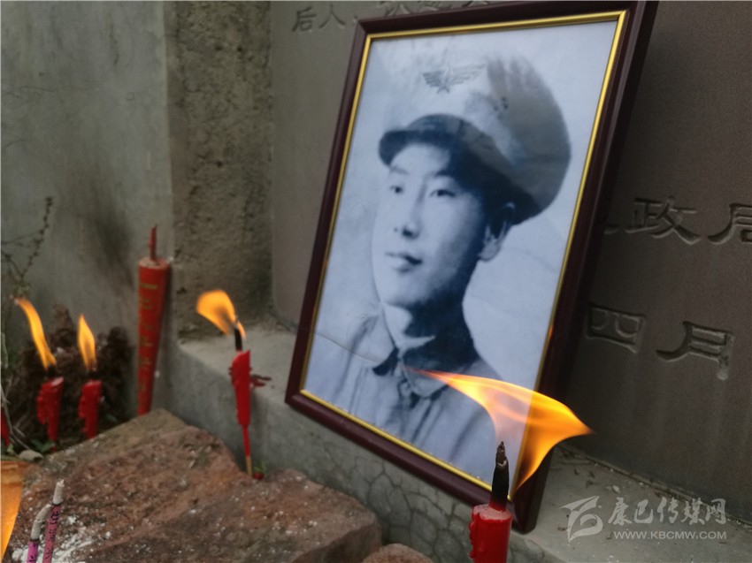 擺上遺像,按照民間習(xí)俗插上香燭、燃起紙錢,火光映照下,身著軍裝的烈士張世光英氣逼人。膝頭沉重跪下,頭顱深深觸地,烈士張世光的侄子張會(huì)臣早已泣不成聲:“大伯,我來(lái)看您了;爸爸身體不好不能來(lái)了,他讓我告訴您,我們想您啊,想了67年啊!”