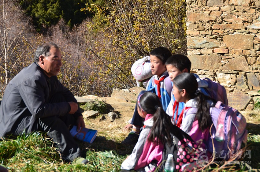 雖然代課教師的工資從當年的每月200元漲到了現(xiàn)在每月800元,然而在以市場經(jīng)濟為主體的社會里,800元工資的人群屬于低收入群體。盡管如此,阿布里老師依然早出晚歸,在那條他閉上眼都能走的小徑上來回奔波,依舊嘔心瀝血教書育人,那郎朗的讀書聲在藏寨的上空久久回蕩。每天上學放學路上,孩童們在阿布里老師的帶領下,在小徑上排著整齊的隊伍,撒下一路歌聲一路歡笑。