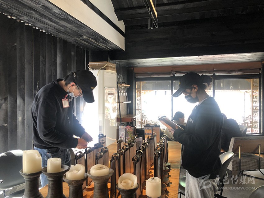 青棵餐吧的店員正在準(zhǔn)備情人節(jié)套餐宣傳臺卡。
