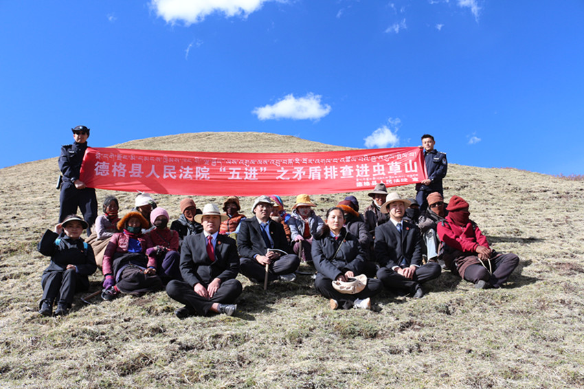 德格縣法院在蟲(chóng)草山宣講。