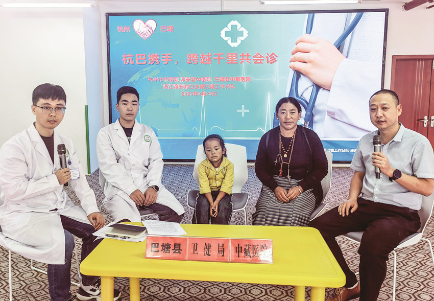 治療初期,朵朵的癥狀無明顯改善。詹宇豪向淳安對口支援巴塘工作分隊匯報了朵朵的情況。工作分隊高度重視,第一時間邀請杭州市中醫(yī)院、淳安縣中醫(yī)院的專家團(tuán)隊進(jìn)行遠(yuǎn)程會診。杭州市中醫(yī)院、淳安縣中醫(yī)院迅速響應(yīng),召集包括神經(jīng)內(nèi)科、神經(jīng)外科、針灸科、康復(fù)科、兒科、中醫(yī)內(nèi)科等多個學(xué)科的專家組建“MDT”(多學(xué)科聯(lián)合會診)團(tuán)隊,為朵朵后續(xù)治療制定了更科學(xué)、更適宜的方案。結(jié)合遠(yuǎn)程會診的意見,詹宇豪采用了電針針刺+面部推拿+手指點(diǎn)穴的方法,引入熱敏灸新技術(shù)為朵朵進(jìn)一步治療,并悉心指導(dǎo)朵朵進(jìn)行面部功能鍛煉。