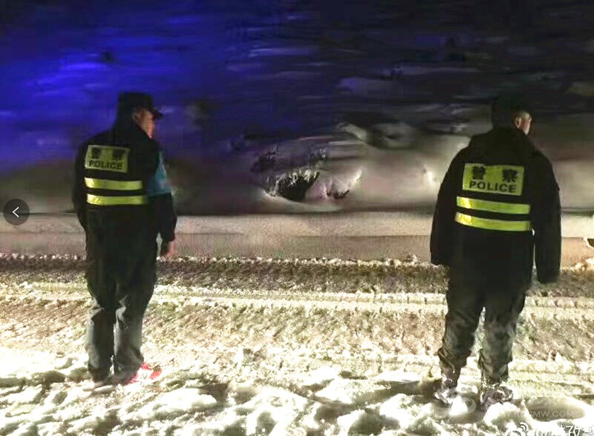 康定市公安局組織60余名警力連夜上山排堵疏導(dǎo),鋪灑防滑沙,幫助過往車輛上掛鏈條,被困司乘人員逐漸離開折多山。
