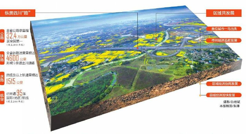 全國(guó)第四大航空樞紐地位鞏固。成都雙流國(guó)際機(jī)場(chǎng)年旅客吞吐量突破4000萬(wàn)人次,跨越至“全國(guó)第四場(chǎng)”。國(guó)際化步伐加快,在中西部地區(qū)率先實(shí)現(xiàn)五大洲都有直航航點(diǎn),至2016年底,已開(kāi)通95條國(guó)際(地區(qū))航線(xiàn),較2012年翻番還多。 精準(zhǔn)扶貧,交通先行。四川省脫貧攻堅(jiān)專(zhuān)項(xiàng)資金,一半投向交通基礎(chǔ)設(shè)施建設(shè);連續(xù)實(shí)施兩輪甘孜州交通建設(shè)推進(jìn)工程和涼山州交通建設(shè)推進(jìn)工程,集中力量抓好農(nóng)村公路建設(shè)和渡改橋,貧困地區(qū)交通基礎(chǔ)設(shè)施條件得到極大改善。目前,全省97.2%的鄉(xiāng)鎮(zhèn)通油路、92%的建制村通硬化路。