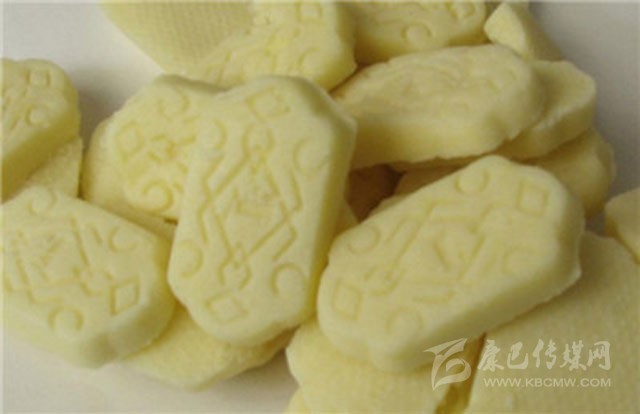 藏族酥酪糕是藏族的著名糕點(diǎn),在藏族同胞的家里常用作款待客人的美味點(diǎn)心。而且它本身具有很好的保健功效,能夠在品嘗美食的同時(shí)又滋補(bǔ)身體。藏族酥酪糕食用起來奶味濃郁,十分受到不同年齡及族群的喜愛,其中還有多種對(duì)身體十分有益的材料,例如西藏人參果就是一種純天然無污染的滋補(bǔ)食品。酥酪糕是用提取過奶油后的乳白色淀粉(藏名曲熱)晾干后,用磨磨成粉末,拌入黃油(奶油)、白糖、角麻(人參果)、葡萄干、桃仁等,做成橢圓形、方形,表面有紅絲綠絲擺成圖案,表現(xiàn)吉祥、長(zhǎng)壽,放入籠屜內(nèi)蒸熟,賓至可整塊獻(xiàn)上,或切成片狀。據(jù)說它有滋補(bǔ)強(qiáng)身之功效。