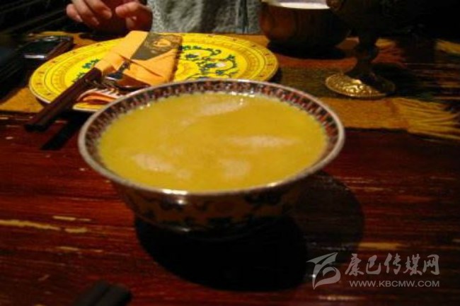 藏族酥油茶是一種以茶為主料,藏語(yǔ)為“恰蘇瑪”,意思是攪動(dòng)的茶。并加有多種食物經(jīng)混合而成的液體飲料,所以,滋味多樣,喝起來(lái)咸里透香,甘中有甜,它既可暖身御寒,又能補(bǔ)充營(yíng)養(yǎng)。