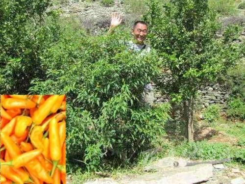 特點:因樹干木質(zhì)化而形成小樹俗稱“樹子海椒”,是多年生植物。最初隨著藏傳佛教的傳入從印度引進,后經(jīng)當(dāng)?shù)靥厥獾牡乩砦恢煤蜌夂颦h(huán)境長期栽培選育出的一種原始的地方辣椒品種。該品種頭年以種子育苗移栽,當(dāng)年開花結(jié)果,可以露地越冬,經(jīng)冬不死,每年春季又可發(fā)生新芽開花結(jié)果,植株高可達(dá)數(shù)米,葉片披針形,果實短角形,頂端稍尖,成熟后果實金黃鮮亮,其椒果肉薄、辣味濃,可開胃健脾,曾入藏藥,而其樹壽命可長達(dá)上百年。