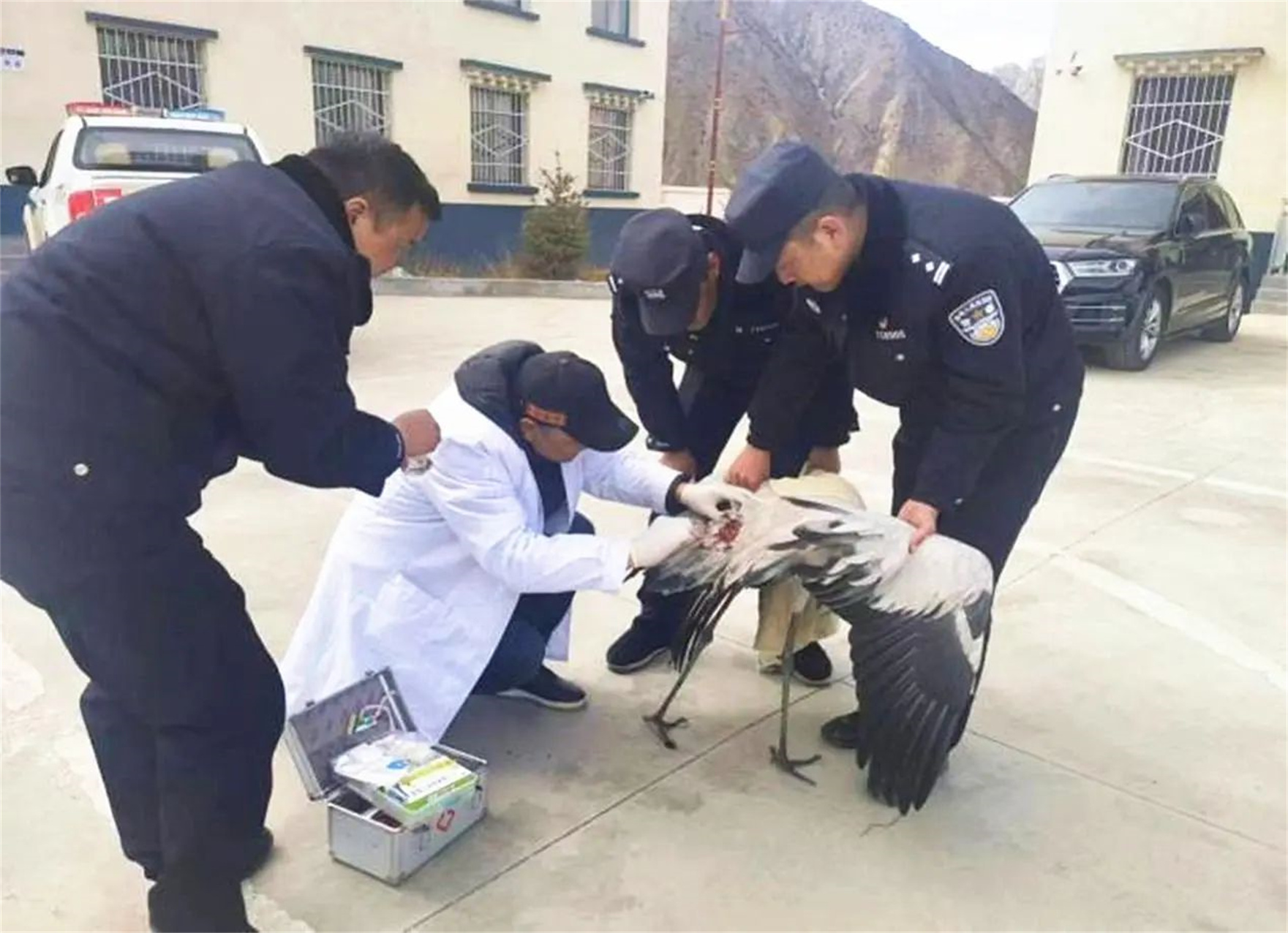 今年3月,石渠縣林草局野保站接收到石渠縣真達(dá)派出所民警送來的一只傷勢嚴(yán)重的國家一級保護(hù)動物——黑頸鶴。