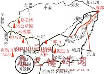 成都至海螺溝旅游路線